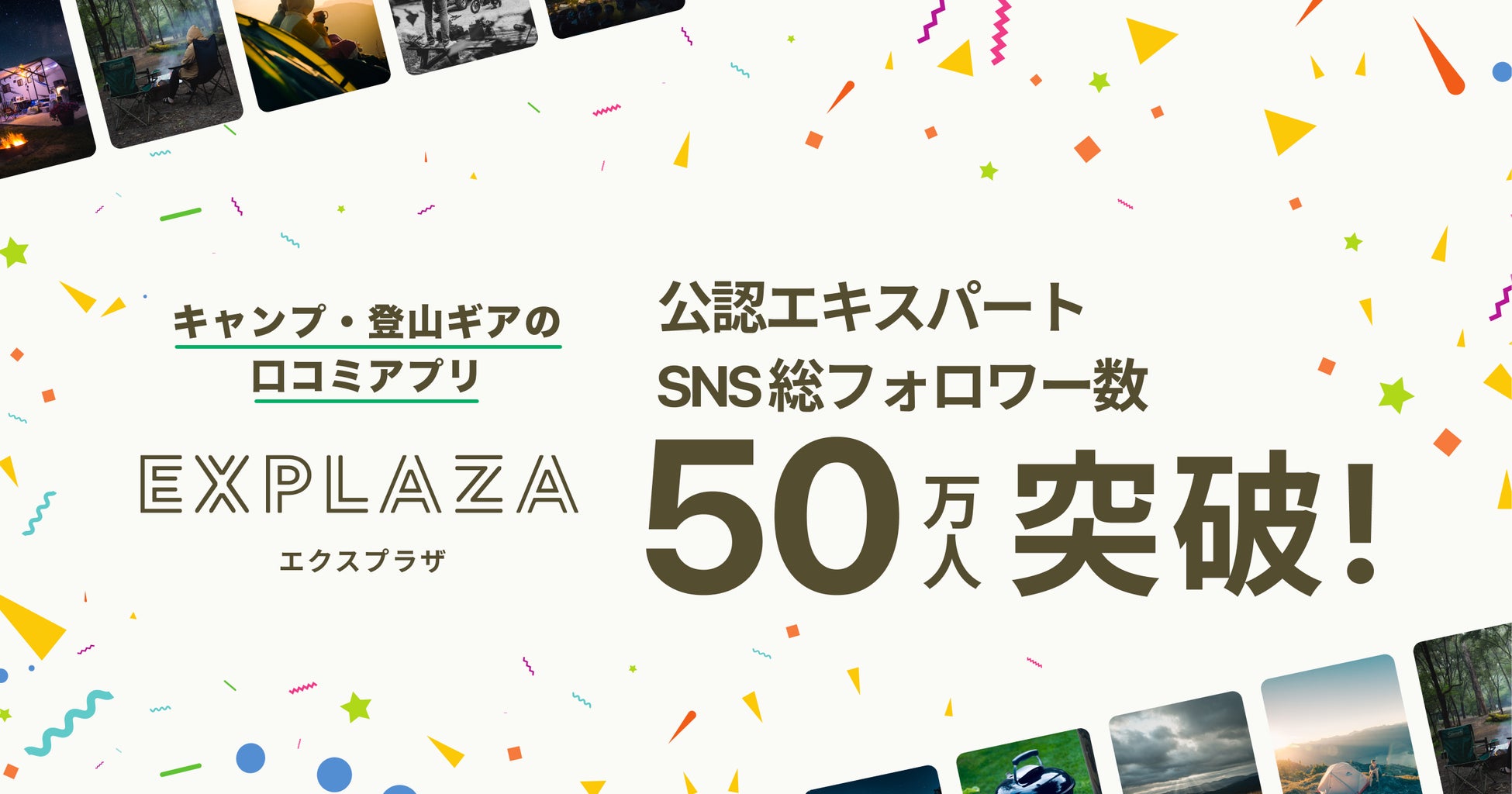 株式会社エクスプラザ(本社:東京都渋谷区、代表取締役CEO 高橋一生、以下エクスプラザ)は、キャンプ・登山ギアの口コミアプリ「EXPLAZA」登録済エキスパートのSNS(Instagram、Twitter)における総フォロワー数が50万人を突破しました。