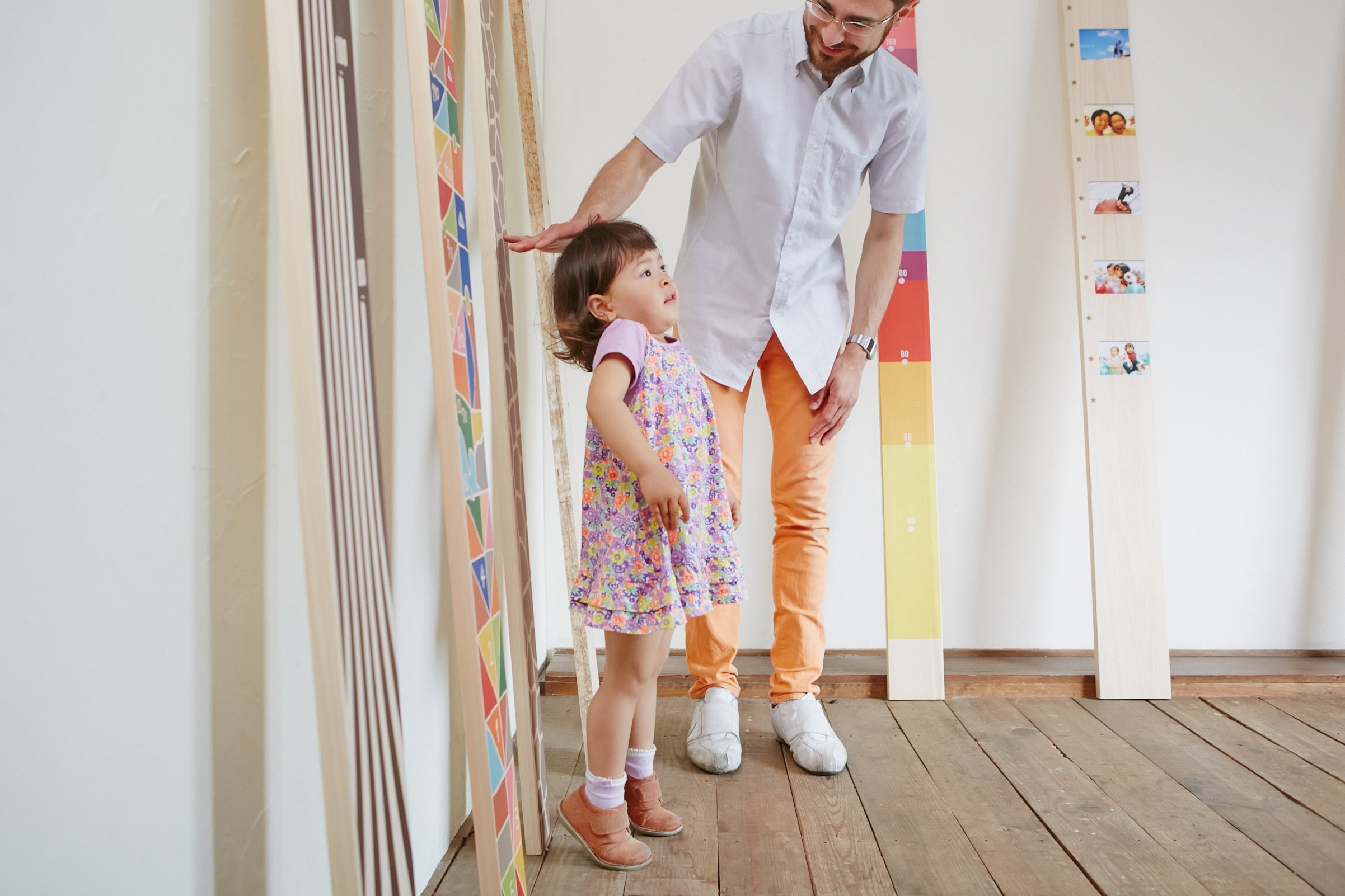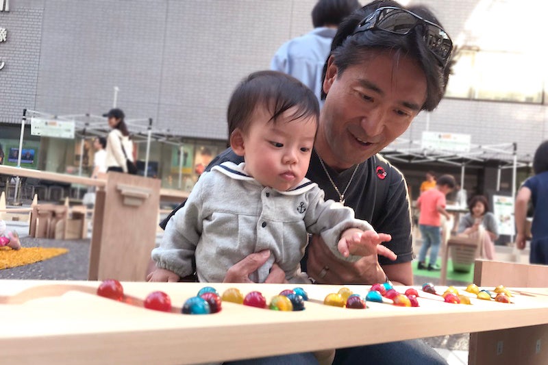 また、「親子の想い出」が沢山詰まって「家族の宝もの」となる木製身長計<me-mori>やビー玉などの展示・販売も行います。