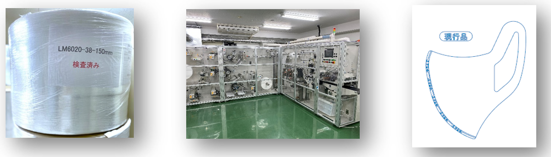 『素材』は、京都大学と岸和田病院が発表した論文(「Aluminium Gauze Reduces SARS-CoV-2 Viral Load in Non-Woven Masks Worn by Patients with COVID-19」スイス‐バーゼルMDPI出版)研究に弊社マスクに使用している不織布を提供しており、本論文により弊社で作っているマスクのより高い安全性が示されました。