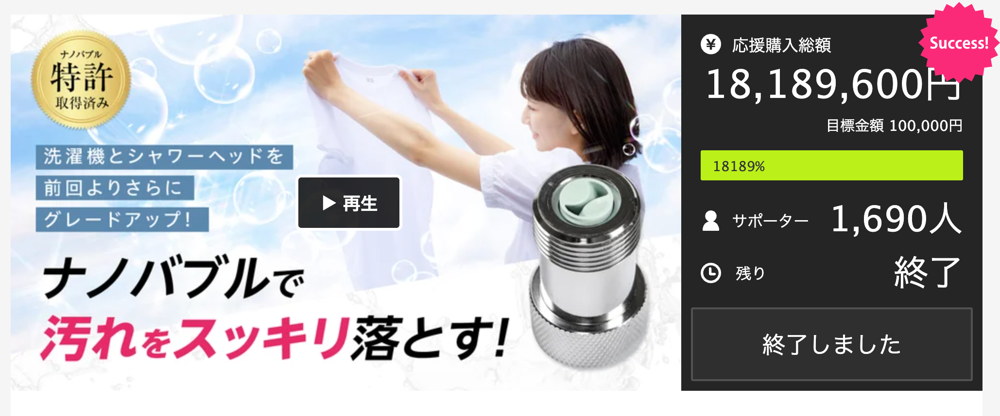 Makuakeにて18,189%の達成率で終了したナノバブル発生器「bubblissimo(バブリッシモ)」のプロジェクトを「machi-ya by CAMPFIRE」にて開始しました。
