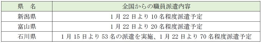 特殊物件等の損害調査をすすめるため、外部鑑定会社所属の鑑定人38名を1月9日に新潟県、富山県、石川県および福井県にそれぞれ派遣しました。