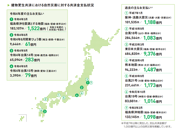 ※過去の主な地震災害の共済金支払実績から、概算として、共済金支払件数10万件、共済金支払額1,000億円を超える規模となることを見込んでおります。