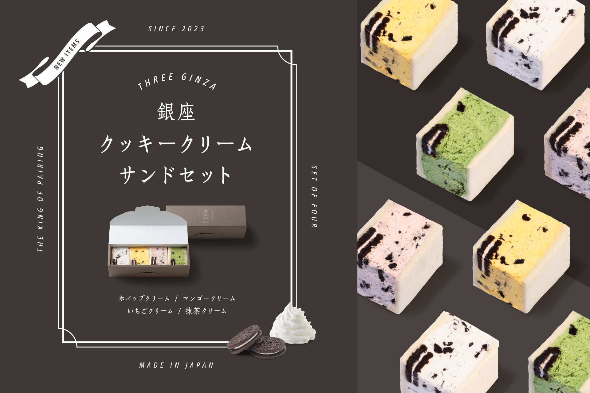 12月末日からは、福岡の【FRUITS SAND THREE 嘉麻店】【FRUITS SAND THREE ゆめタウン飯塚店】の2店舗でも数量限定で販売を予定しています。銀座限定の新商品『銀座クッキークリームサンドセット』をこの機会にぜひお楽しみください。