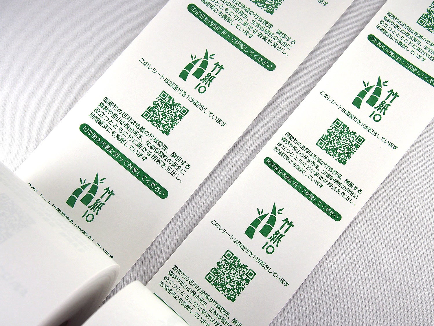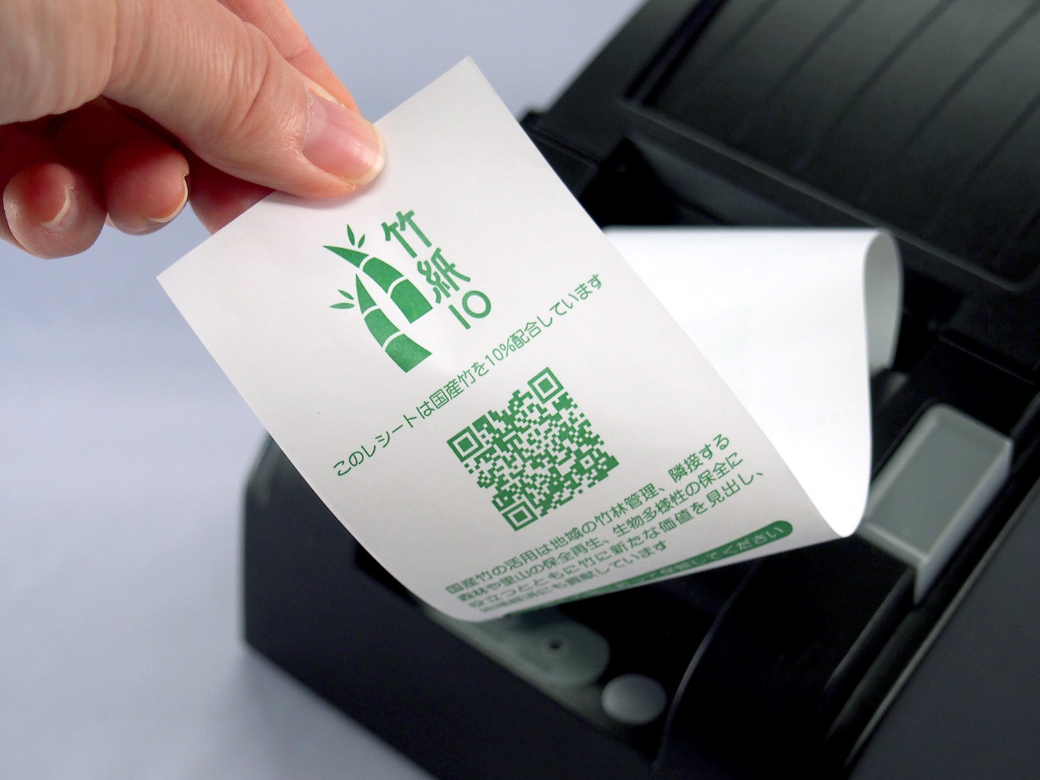 現状、竹紙を使った製品は封筒や名刺などへの使用が主流ですが、サーマルロール紙はレシートや順番券などより多くの人が日常的に目にするものであるため、もっと広く世の中に竹紙や、さらには日本の放置竹林などの竹問題を考えるきっかけになっていけたら、そう願っています。