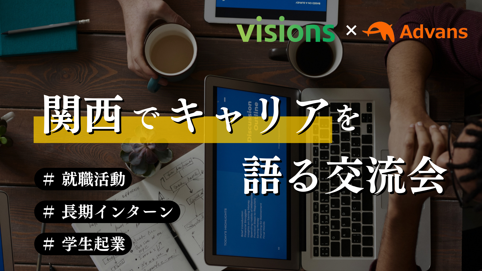 また、学生起業においても創業メンバー集めに苦労したりと出会いの少なさが目立ちます。そこでこの度は、BRANDING PLATFORM「visions」を運営されている株式会社パラドックス様と共同で、関西圏でキャリアについて本気になって活動している学生同士の交流会を開催することとなりました。