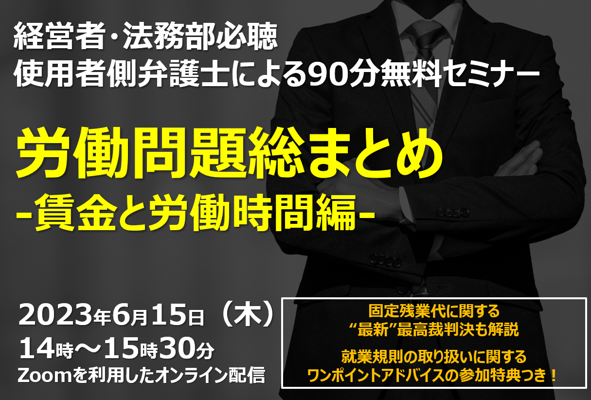 『労働問題総まとめセミナー』を6月15日(木)に無料オンラインにて開催