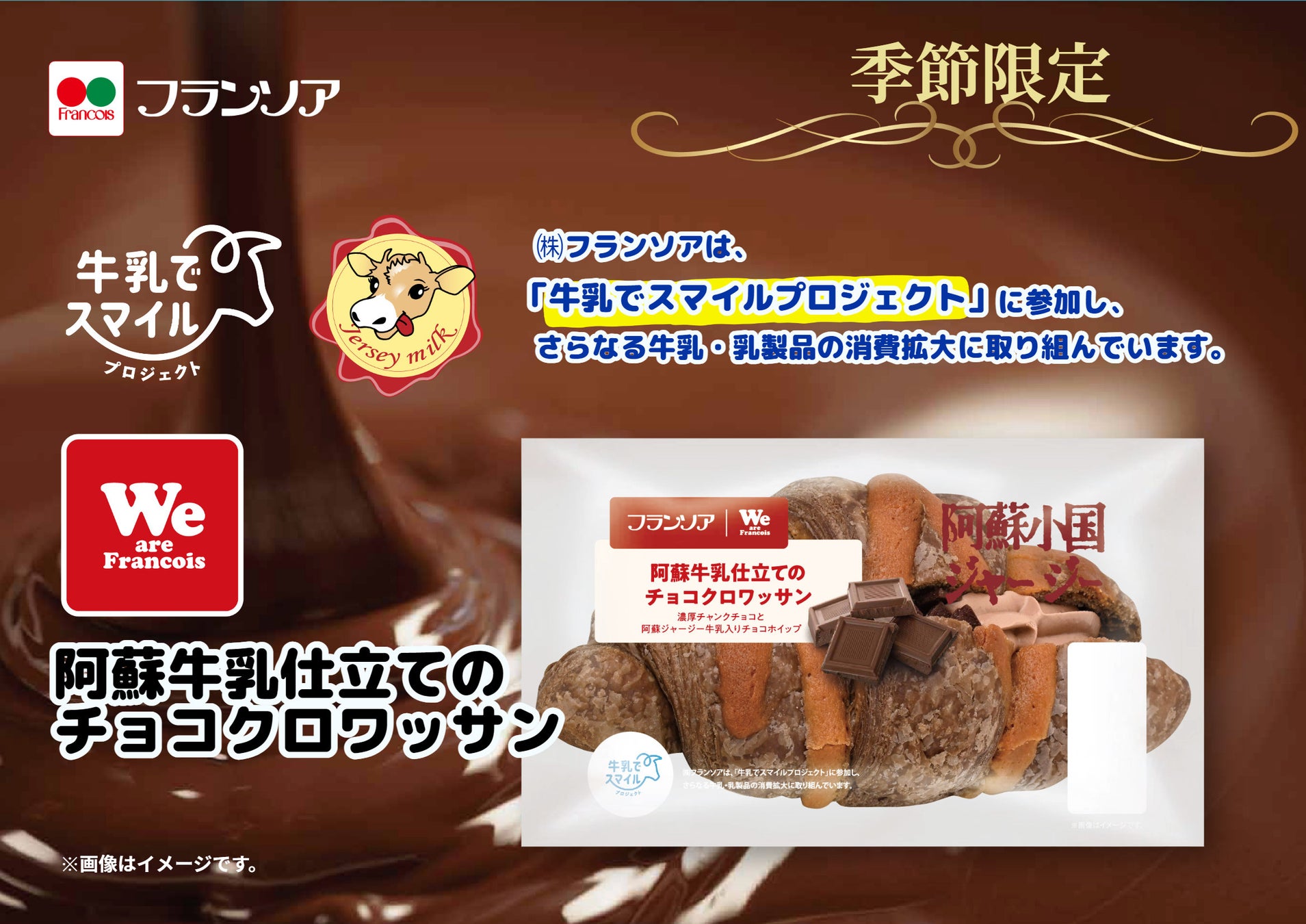 チョコの消費最需要期をチャンスに!寒い時期の牛乳消費の落ち込みをパンで応援!「阿蘇小国ジャージー牛乳×チョコ」2月1日発売~牛乳でスマイルプロジェクト参加 第2弾~