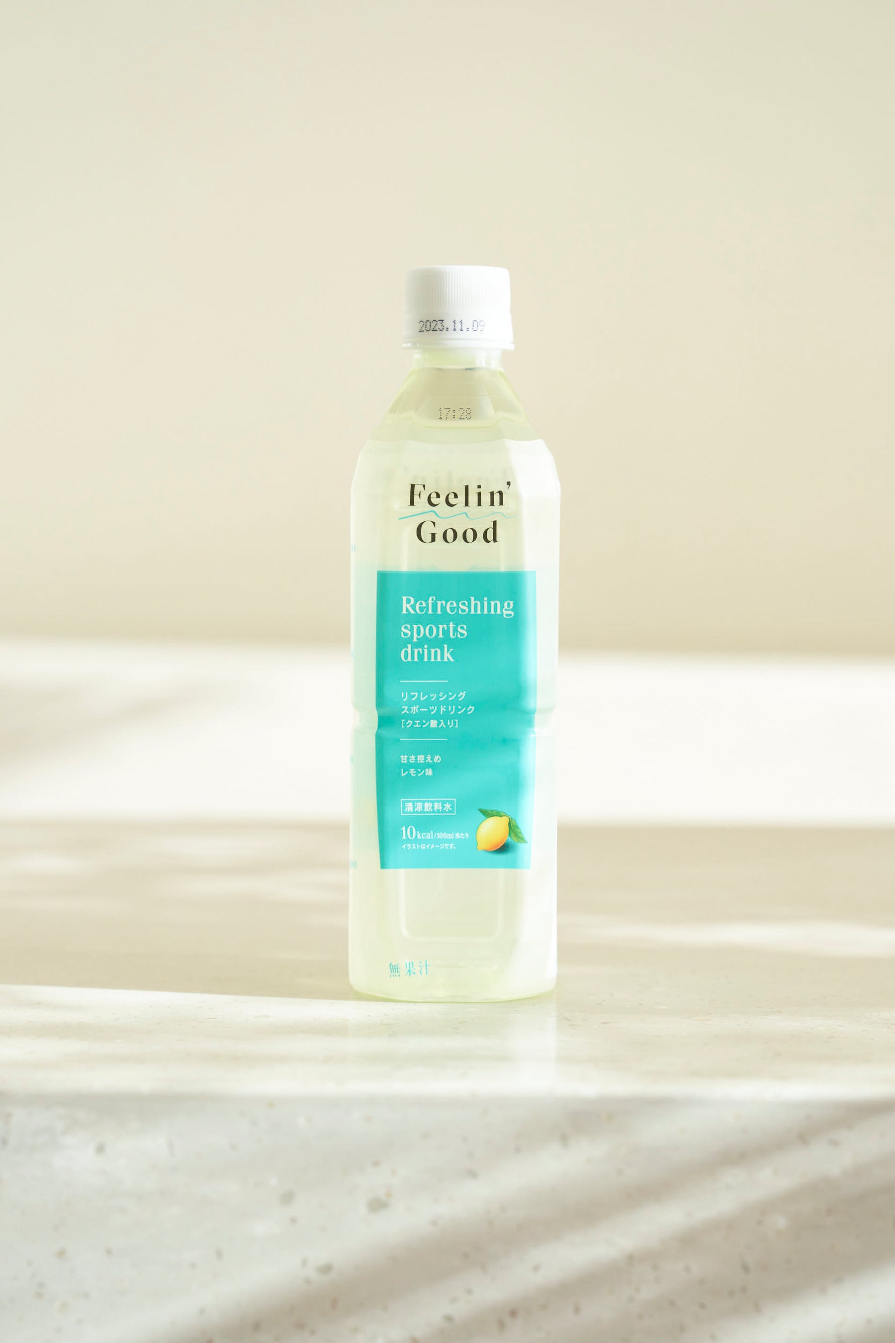 「Feelin'Good リフレッシングスポーツドリンク」は運動による発汗・乾燥などで水分が不足しがちの方に、水分補給を目的としたスポーツドリンクです。また、栄養をエネルギーへと変換するサポートを行うクエン酸を配合いたしました。1本500mlでクエン酸1,000mgを摂取でき、トレーニングの合間や前後は勿論、気分をスッキリさせたい時にもオススメ、甘さ控えめのスッキリしたレモン味で50キロカロリーに抑えました。