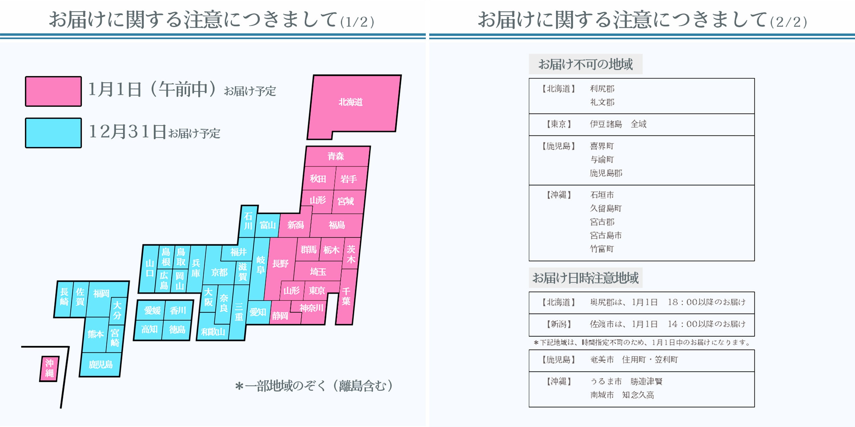 ※1 配送日数の関係で、お送りいたしかねる地域や、お届け時間帯が変わってくる地域もございますので、詳しくは上記を詳しくご参照ください。