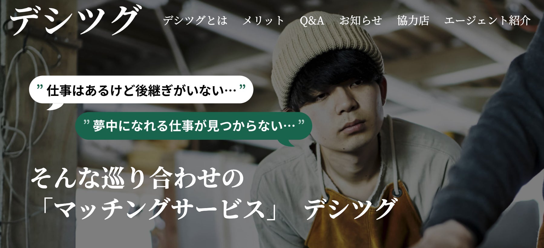 デシツグは「師事」に特化した情報サイト。「想いを引き継いでくれる人材をしっかりと選んで採用したい」という事業者と、「専門性の高い業界でその道を極めたい」という求職者のマッチングを叶える従来の転職サイトとは異なる新しいサービスです。