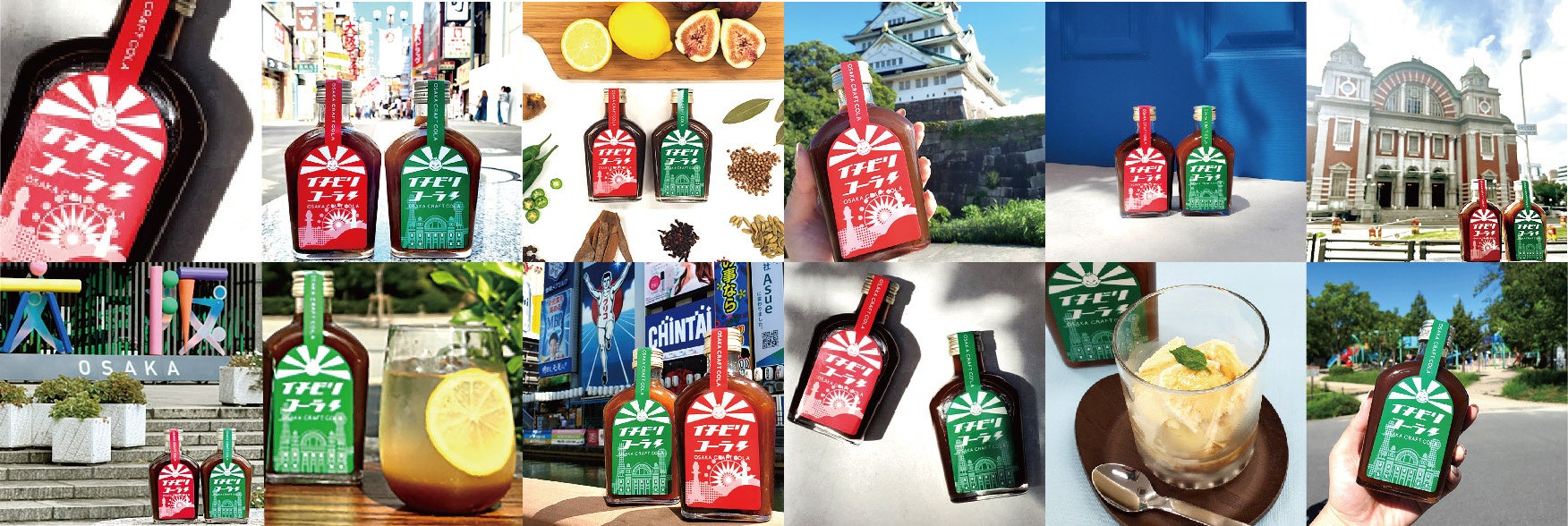 「地域産品で大阪を盛り上げたい」、「大阪の素晴らしさを広めたい」との願いを込めたラベルデザインです。今後も大阪に根付き愛される建造物、文化、食などとコラボレーションした企画など、イチビリコーラを通して、地産品で地域を盛り上げる活動を積極的に行ってまいります。
