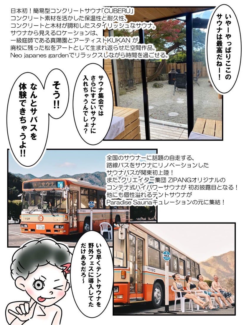 全国のサウナーに話題の自走する路線バスをサウナにリノベーションしたサウナバスが関東初上陸!また、クリエイター集団 ZIPANGオリジナルのコンテナ式ハイパワーサウナが 初お披露目となる!