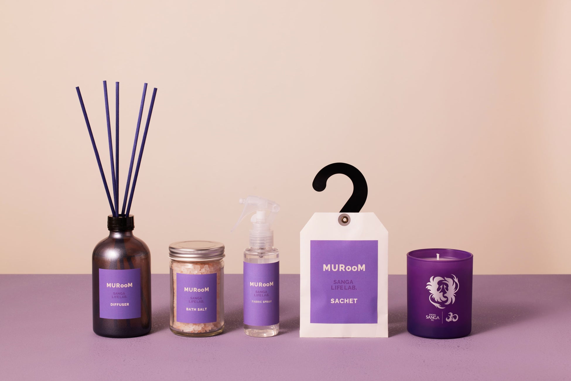 今回発売する『MURooM』商品は、全部で5アイテム。(ディフューザー、バスソルト、ファブリックスプレー、サシェ、アロマキャンドル)