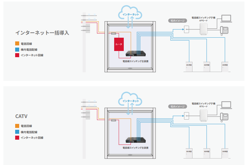 ・再配線工事が不要、従来の電話線を継続利用したまま、工事コストがゼロに