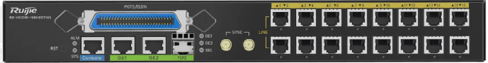 ・10/100/1000M適応イーサネット電気ポート2個、10/1G SFPイーサネット光インターフェイス1個、RJ21インターフェイス(16ウェイを含む)1個、RJ11インターフェイス16個、同軸SYNCインターフェイス2個、電源アダプタ1個