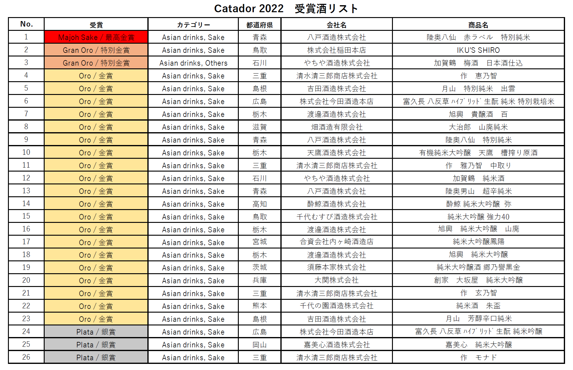 南米最大級のコンペティション「カタドール2022」の受賞酒が発表されました!