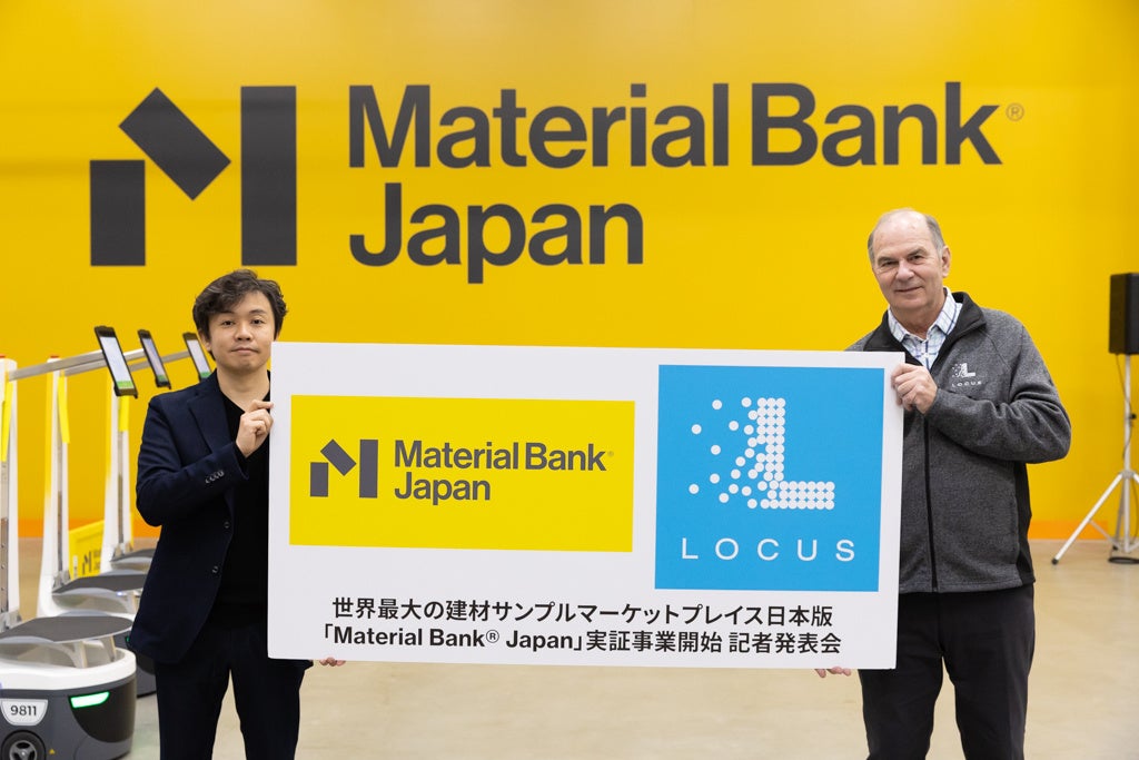 世界最大の建材サンプルマーケットプレイスである米国「Material Bank®」の日本での事業展開を行うDesignFuture Japan株式会社(本社:東京都渋谷区、CEO:中沢 剛、以下「DesignFuture Japan」)と、物流倉庫向け自律移動ロボット(AMR)のリーディングカンパニーであるLocus Robotics(本社:米国マサチューセッツ州 CEO:Rick Faulk <リック フォーク>)は、「Material Bank® Japan」(https://materialbank.jp)の運用実証事業の実施において連携することを発表します。