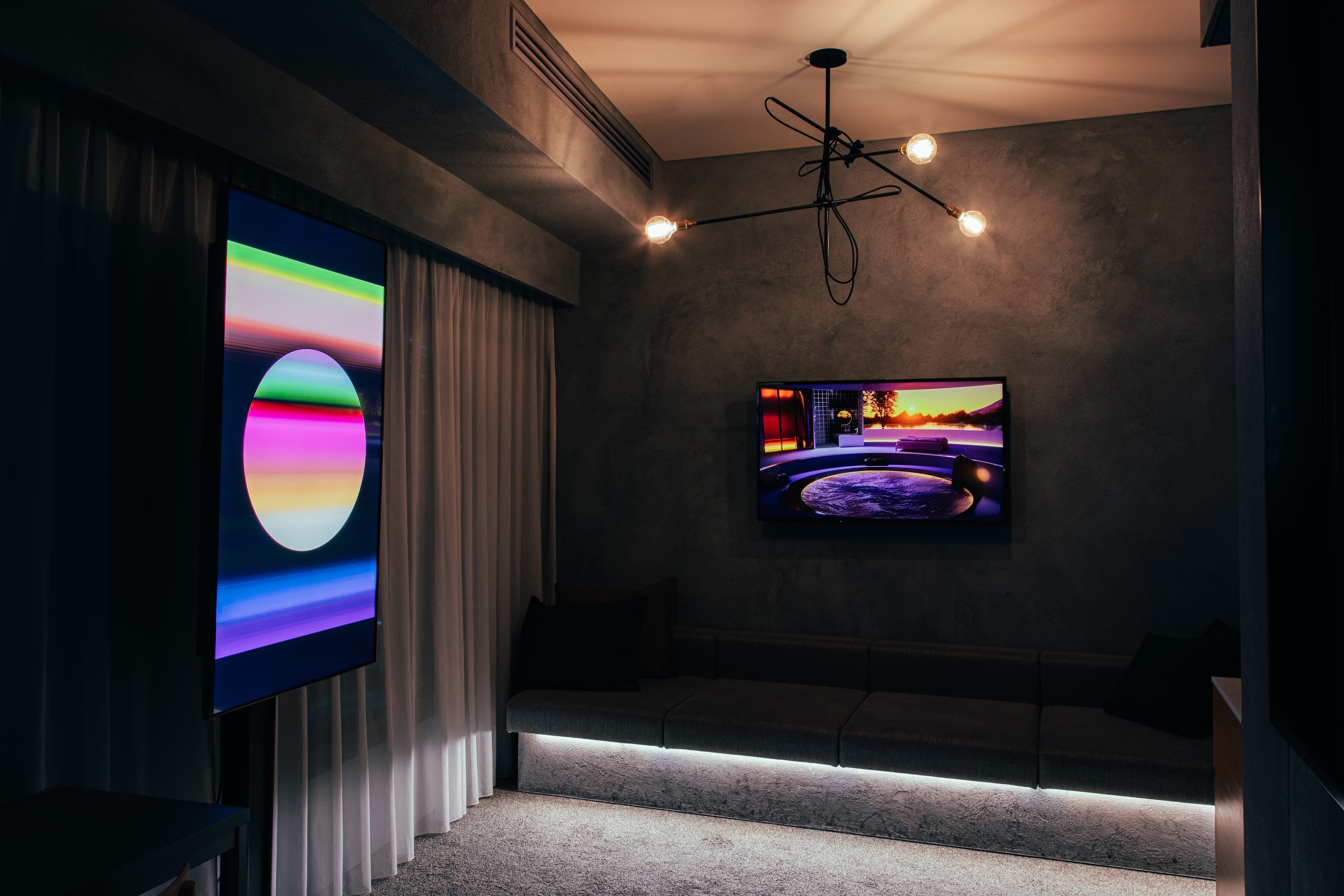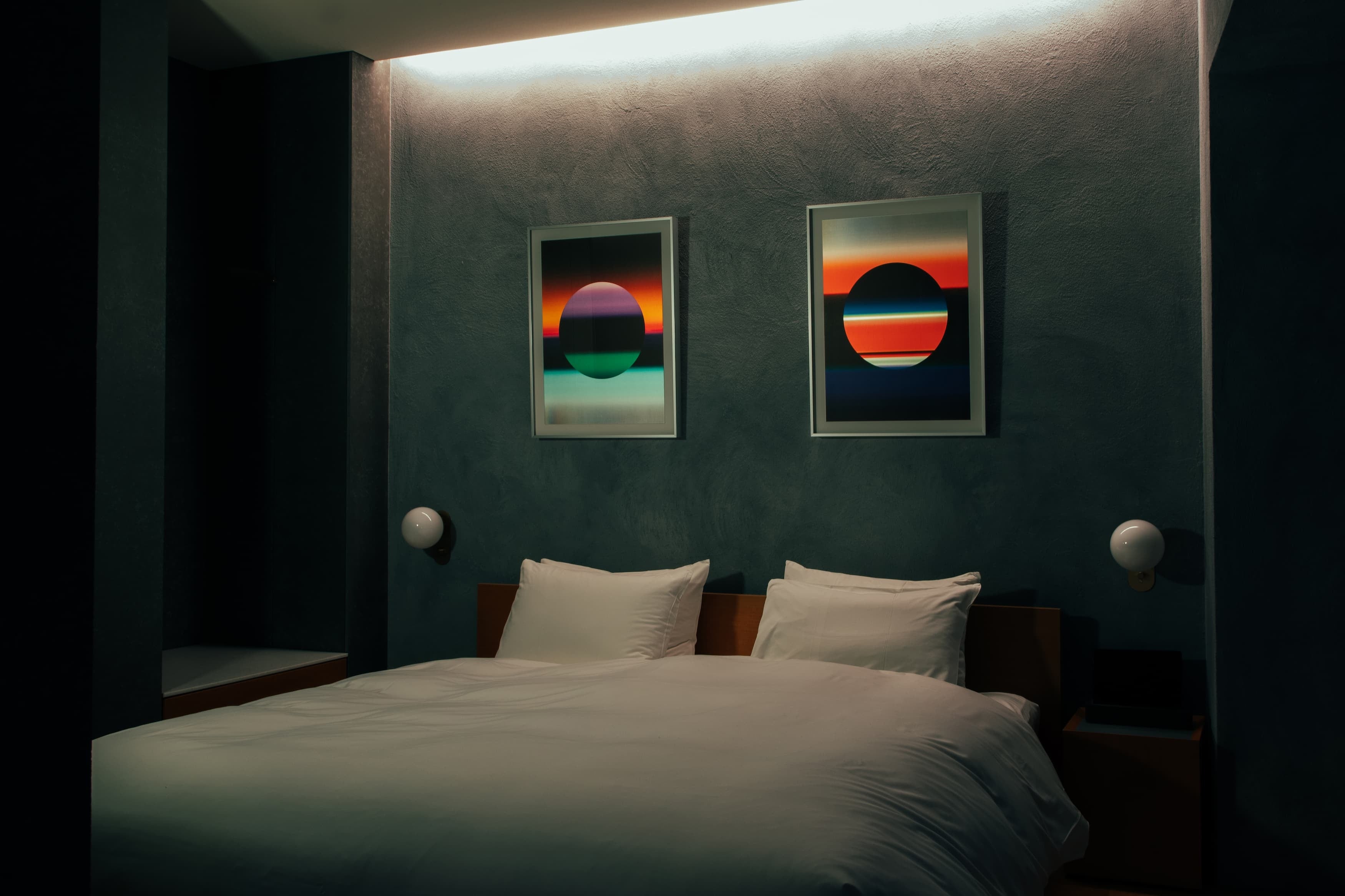 アート作品「SUN」をインターフェースとして、デジタルとフィジカルを行き来するような新たなアート体験を創り出す、複合メディアアートプロジェクトです。「SUN」のアートを手がけるのは、グラフィックや映像、立体、インスタレーションなど様々な表現方法による作品を制作する傍ら、ファッションブランドへのグラフィック提供及びデザイン、広告ビジュアル制作、店舗空間デザインなど、アートディレクター、デザイナーとしても幅広く活躍するアーティストのYOSHIROTTEN。今回のプロジェクトにおいても、平面作品やデジタル・フィジカルメディア、インスタレーション、宿泊体験のディレクションなど、その表現領域は多岐にわたります。