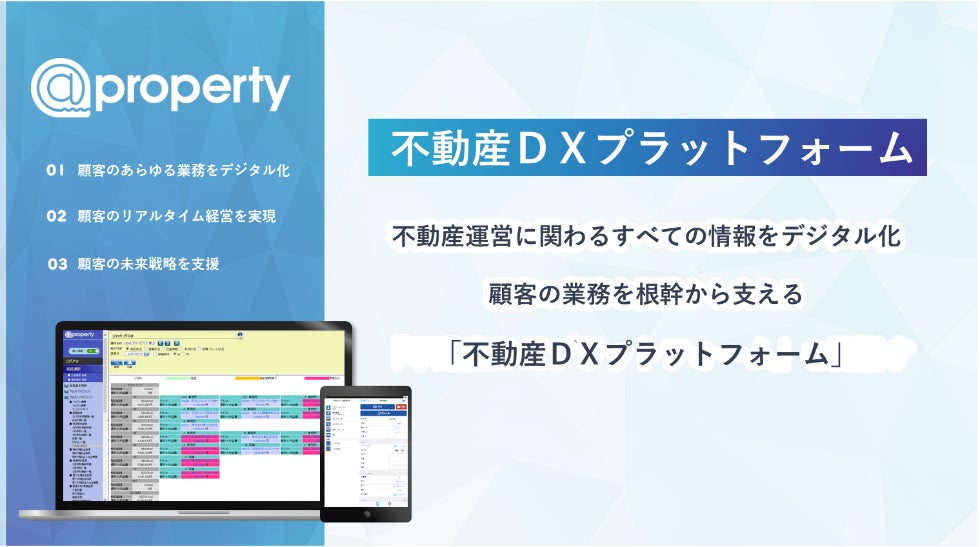プロパティデータバンク株式会社(本社:東京都港区、以下「プロパティデータバンク」)は、不動産管理業務におけるあらゆる情報を一元管理し、リアルタイム不動産経営を実現する不動産管理クラウド型ERP「@property」をはじめ、不動産管理におけるDXを推進するITツールを開発・提供しております。