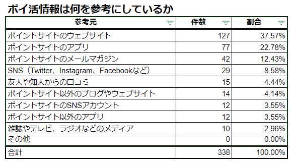 ポイントサイト以外ではSNSを参考にしている回答が多い