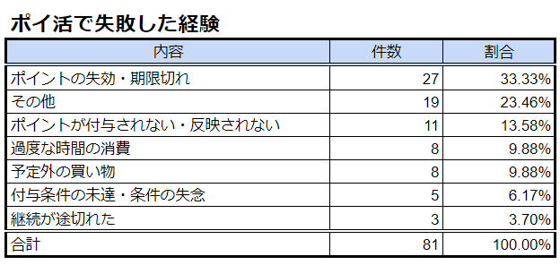「ポイントの失効・期限切れ」が失敗経験の最多