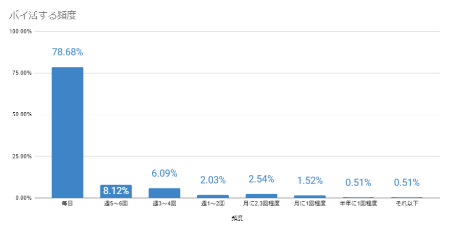 また、ポイ活の頻度については「毎日」が最多の結果となり、習慣的にポイントを利用されているものと推察されます。