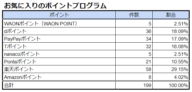 続いて①利用しているポイント、またその中で②お気に入りのポイントについて調査しました。