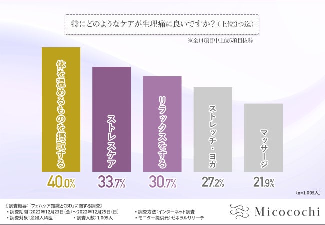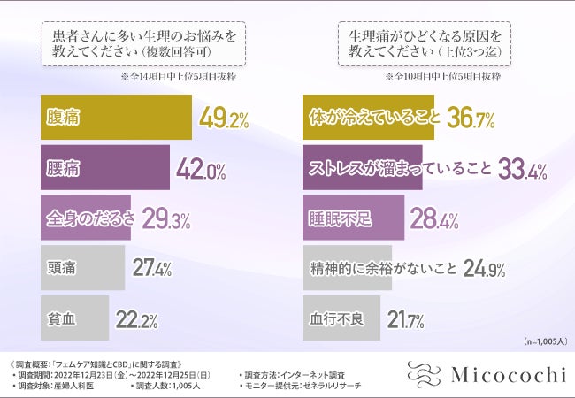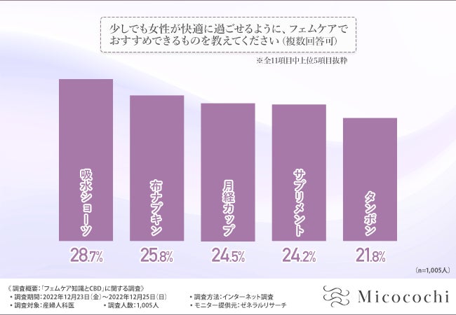 そこで今回、フェムケアブランド『Micocochi (ミココチ)』(https://www.micocochi.com/)を展開する株式会社スタージャパン(https://starjpn.com/)は、産婦人科医を対象に、「フェムケア知識とCBD」に関する調査を実施しました。