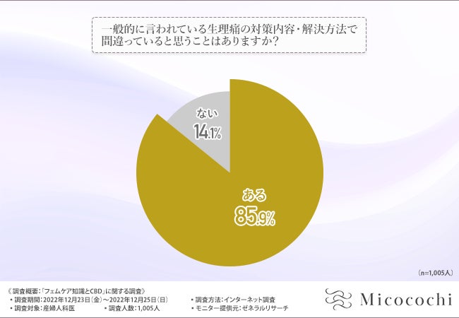 「一般的に言われている生理痛の対策内容・解決方法で間違っていると思うことはありますか?」と質問したところ、8割以上の方が『ある(85.9%)』と回答しました。