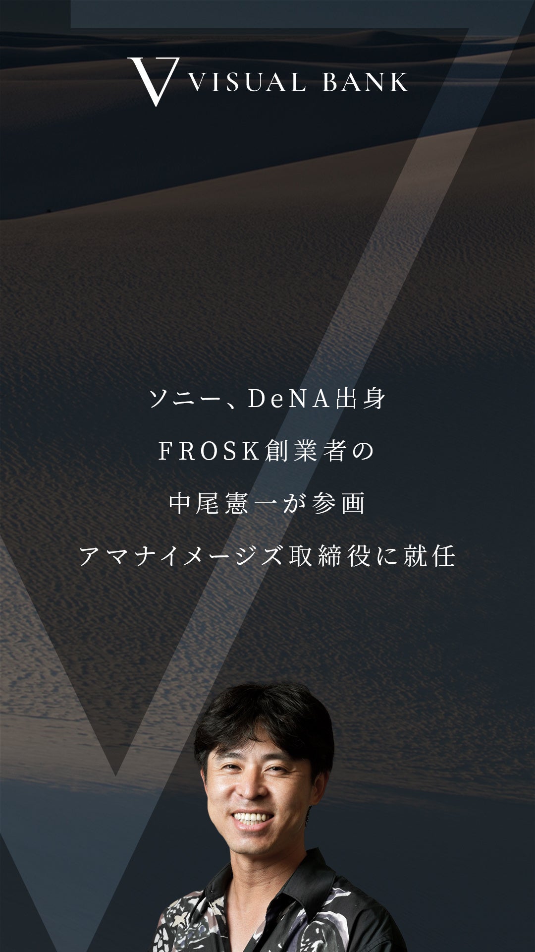 Visual Bank株式会社(代表取締役:沼澤裕太、以下『Visual Bank』)は、100%子会社である株式会社アマナイメージズ(以下アマナイメージズ)の取締役として、中尾憲一が就任したことをお知らせいたします。