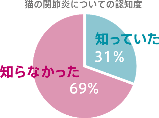 飼主様の約70%が猫に関節疾患があることを「知らなかった」と回答。飼主様が猫のOAに気づきにくい理由として、猫が高齢になったために活動量が減ったとの考えや、もともとの性格からあまり動かないと考える傾向が要因となっています。