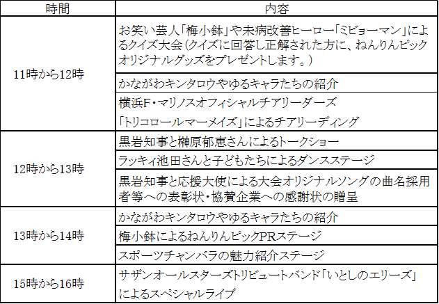 ・ステージイベントのスケジュールと出演者は次のとおりです。