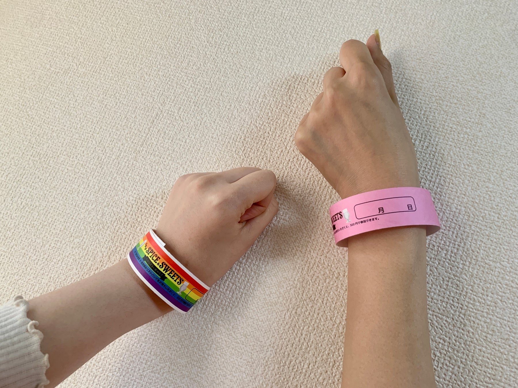追加の新情報として、気分に合わせたコミュニケーションが可能になる2色のリストバンドをご用意しました。イベント参加者は、自分に合ったカラーを選び、コミュニケーションをより活発にすることができます。
