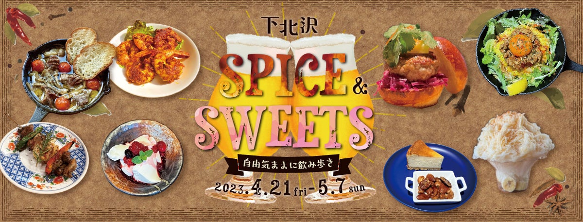 株式会社アイラブ(東京都世田谷区、代表取締役社長 西山友則)と下北沢商店連合会は、2023年4月21日(金)から5月7日(日)までの17日間、「スパイス」と「スイーツ」をテーマにした料理が堪能でき、行きつけのお店を見つけられる飲み歩きイベント「下北沢スパイス&スイーツ 〜自由気ままに飲み歩き〜」を開催いたします。58店舗の飲食店が開催期間中にしか味わえないオリジナルメニューを提供します。