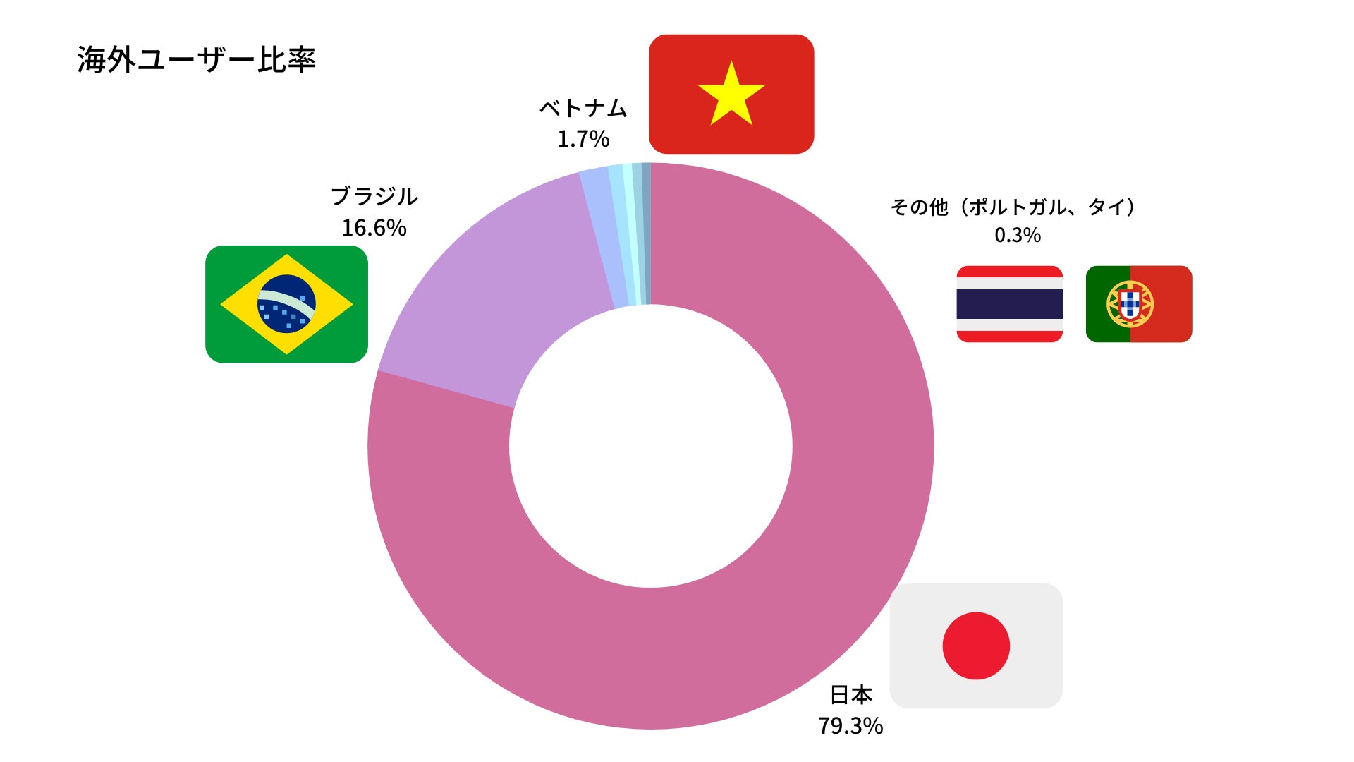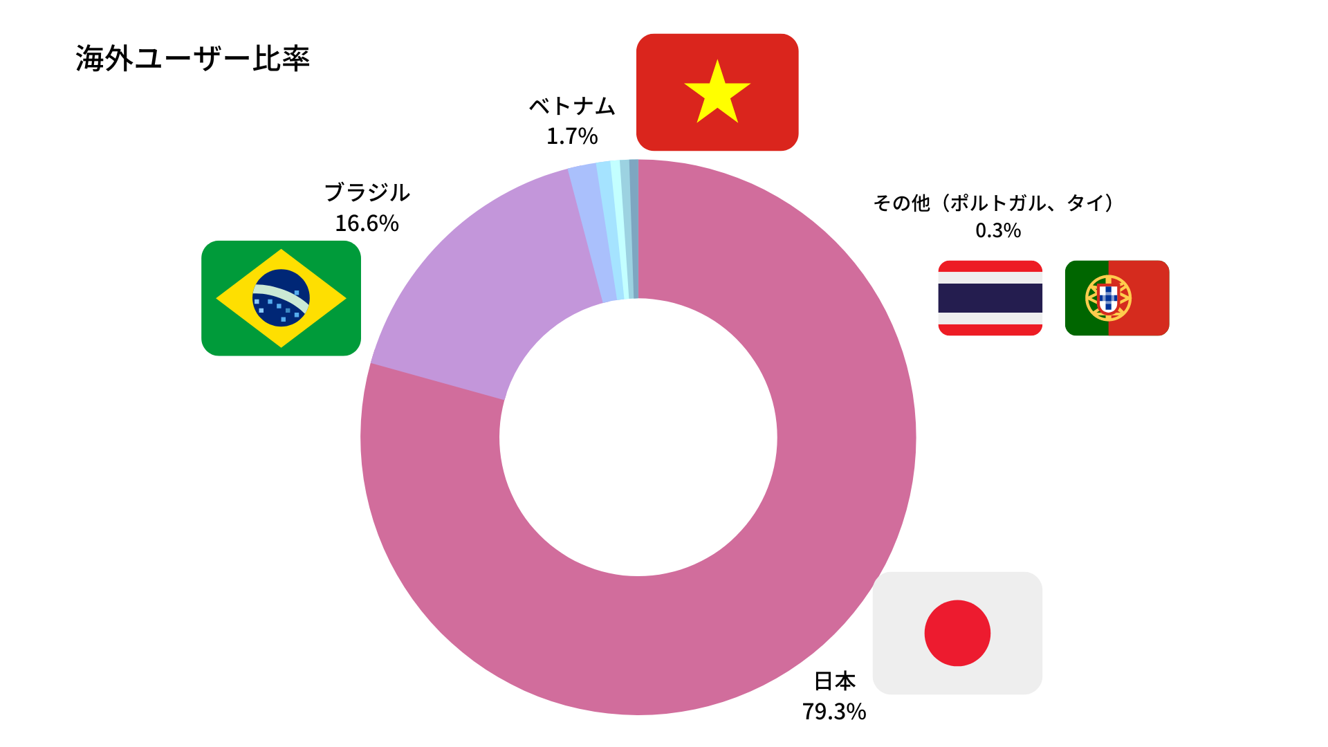現在のユーザーデモグラフィックデータに基づき、注力国を決め、ローカライズ、ユーザー獲得キャンペーン、ブランディング向上を目指します。