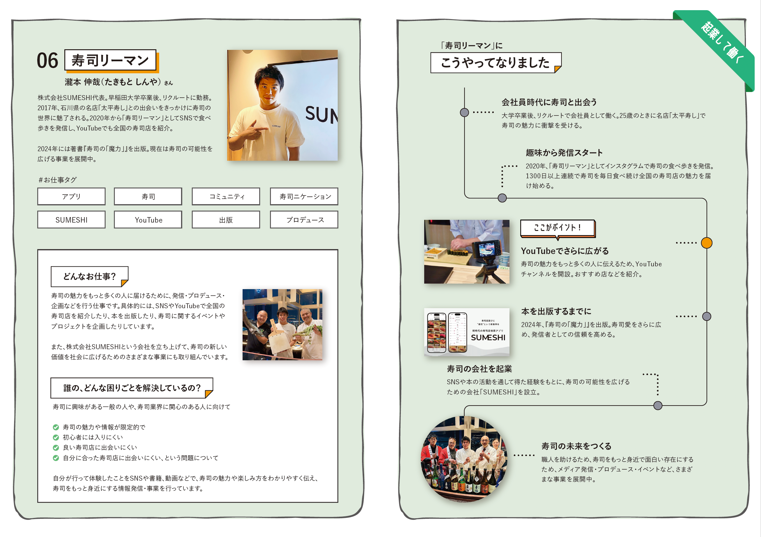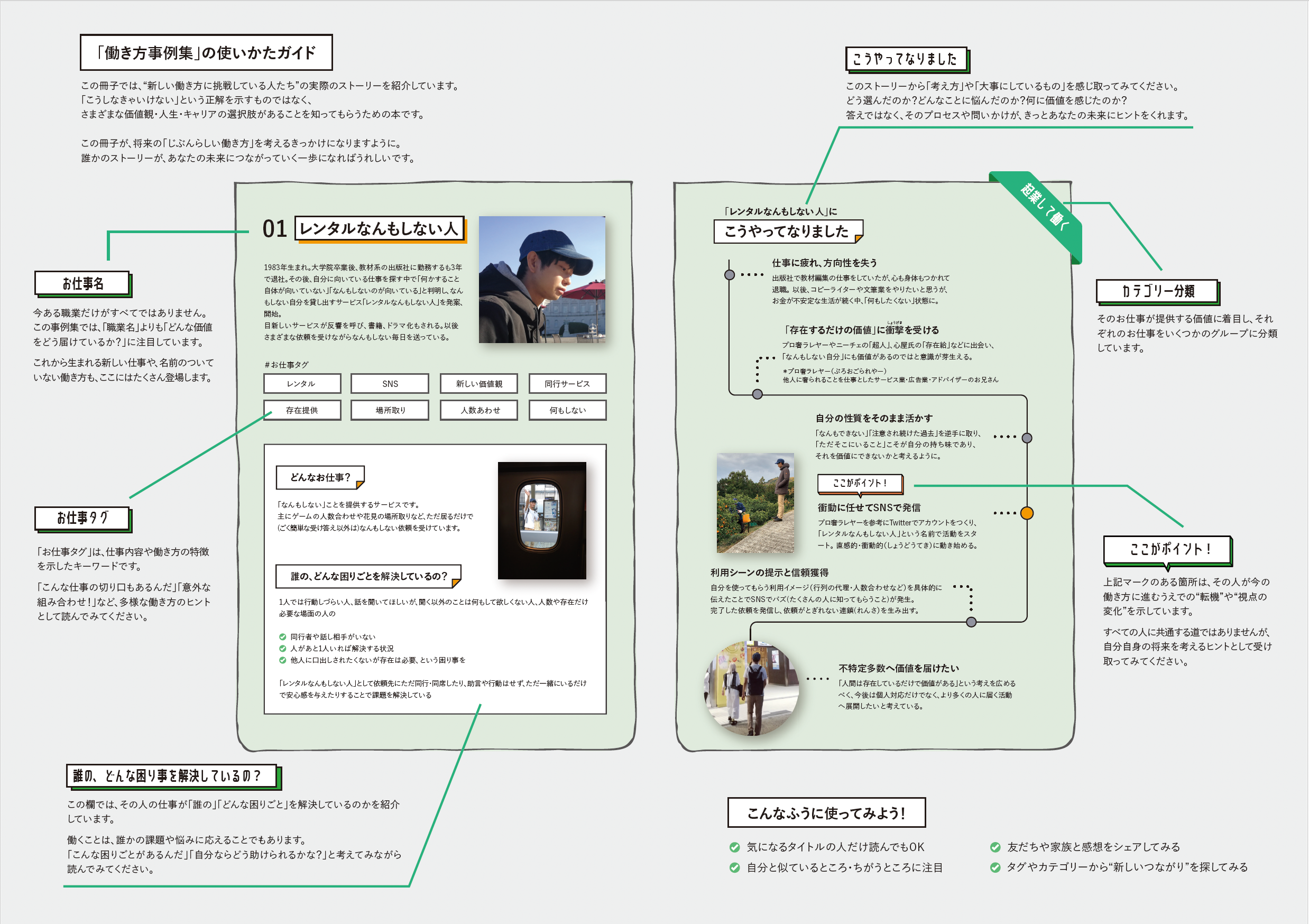 本事例集では、「レンタルなんもしない人」「香り演出家」「寿司リーマン」「Culture Producer」など、