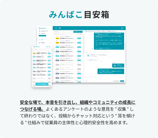 「みんばこ」は、社員が“匿名で本音を共有できる”意見収集ツールです。