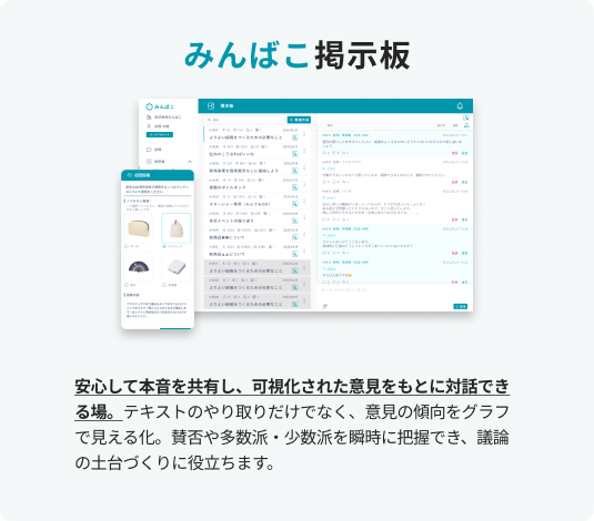 目安箱が“声を届ける仕組み”であるのに対し、掲示板は“声を交わして深める仕組み”として開発。