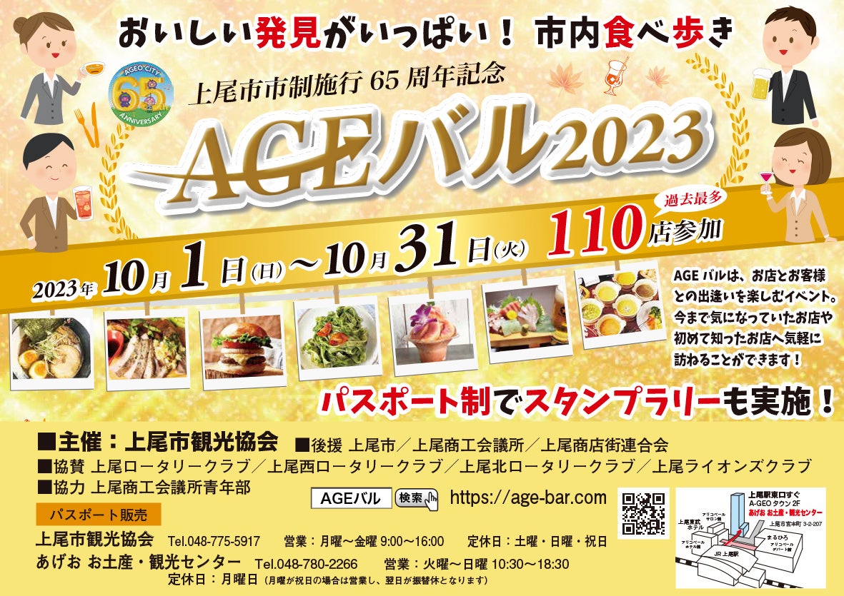 上尾市市制施行65周年記念 おいしい発見がいっぱい! 市内食べ歩き AGEバル2023。パスポート制でスタンプラリーも実施!