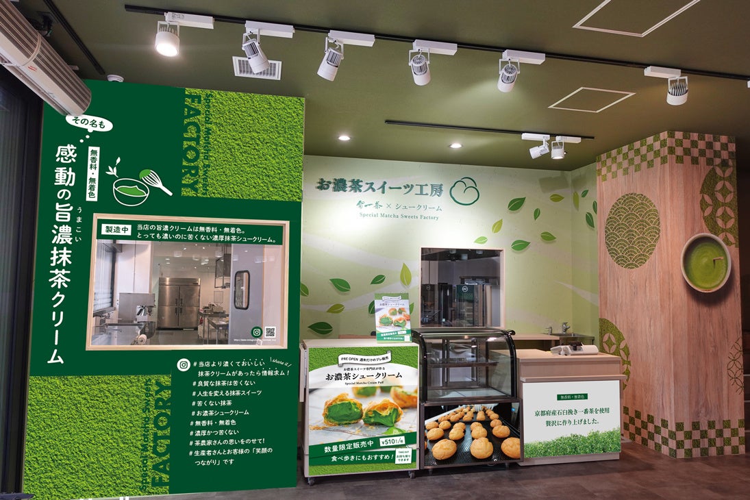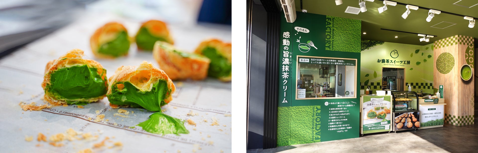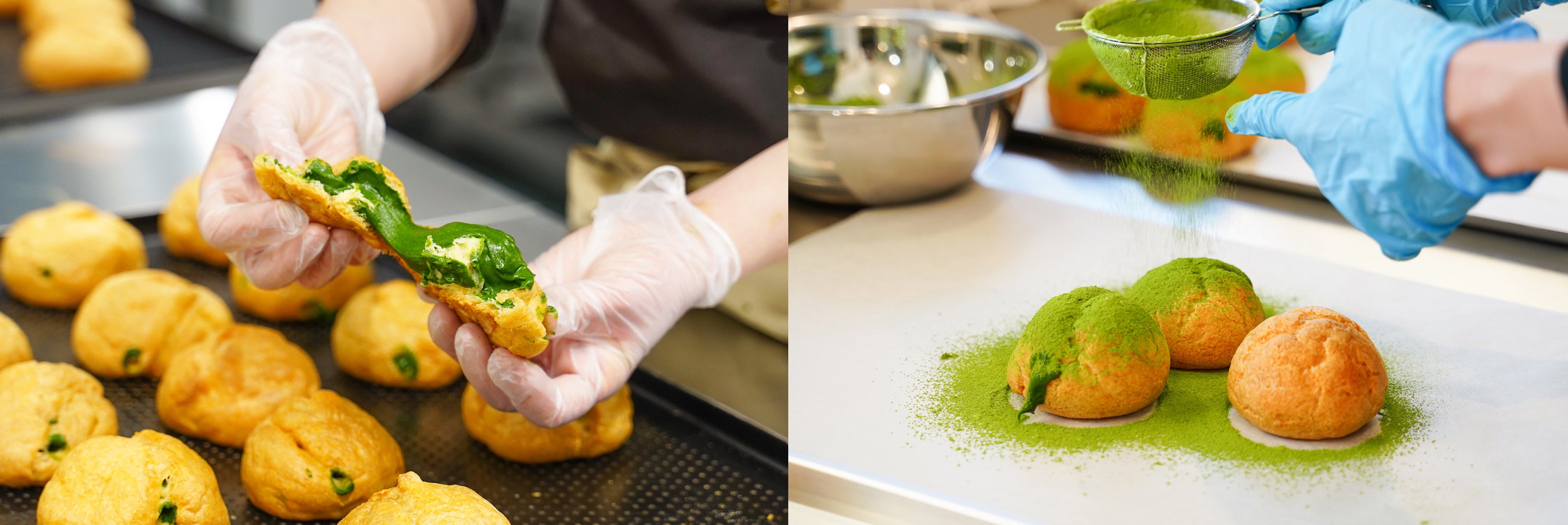 京都府産石臼挽き一番茶を贅沢に使用した「お濃茶シュークリーム」の季節限定商品が販売されます。濃い=苦いではなく、濃い=旨みが特徴の旨濃抹茶クリームが生み出すハーモニー。