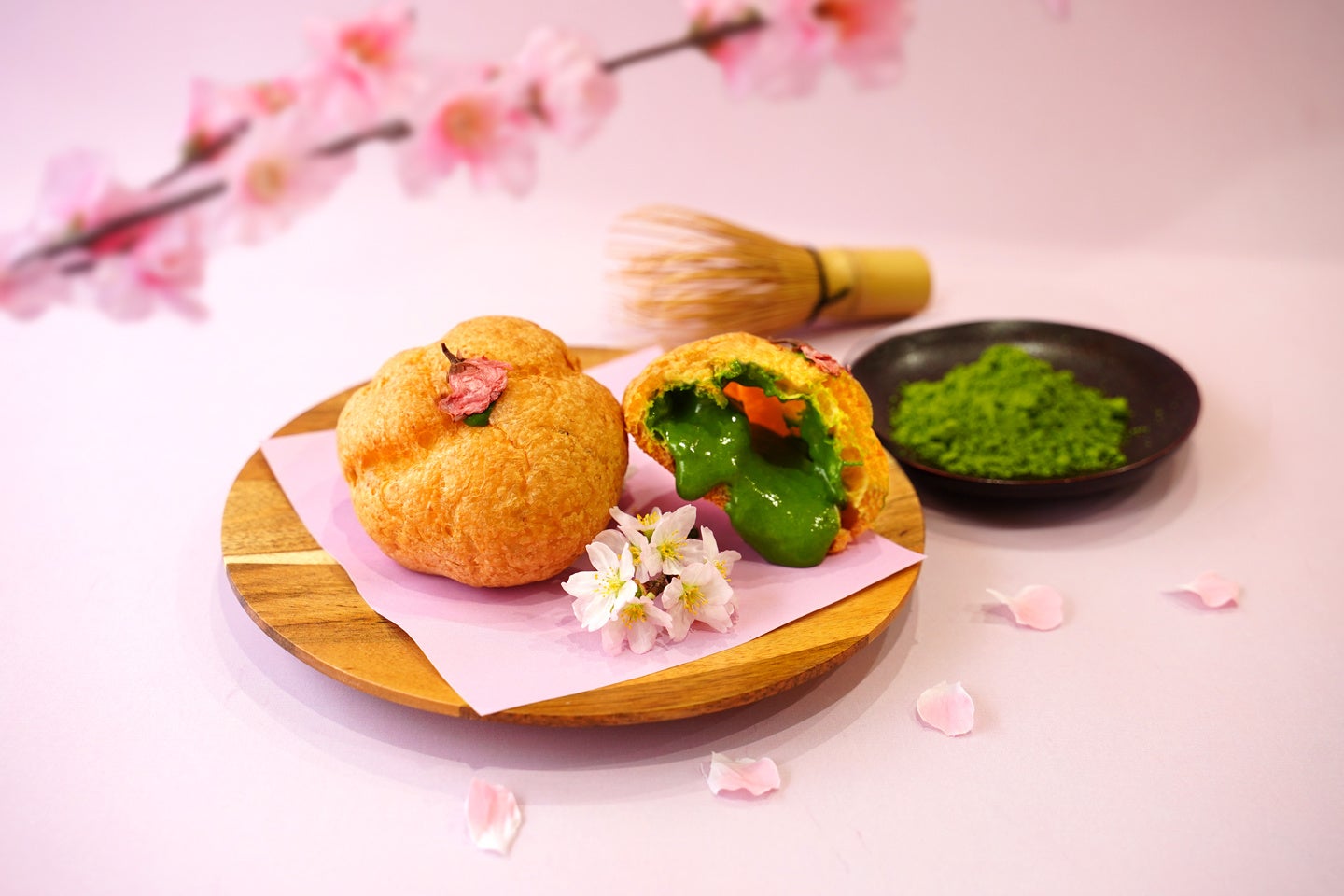 京都府産石臼挽き一番茶を使用した旨味と濃さを感じる旨濃抹茶クリームと、季節の花&フルーツの相性が抜群のシュークリームが発売。