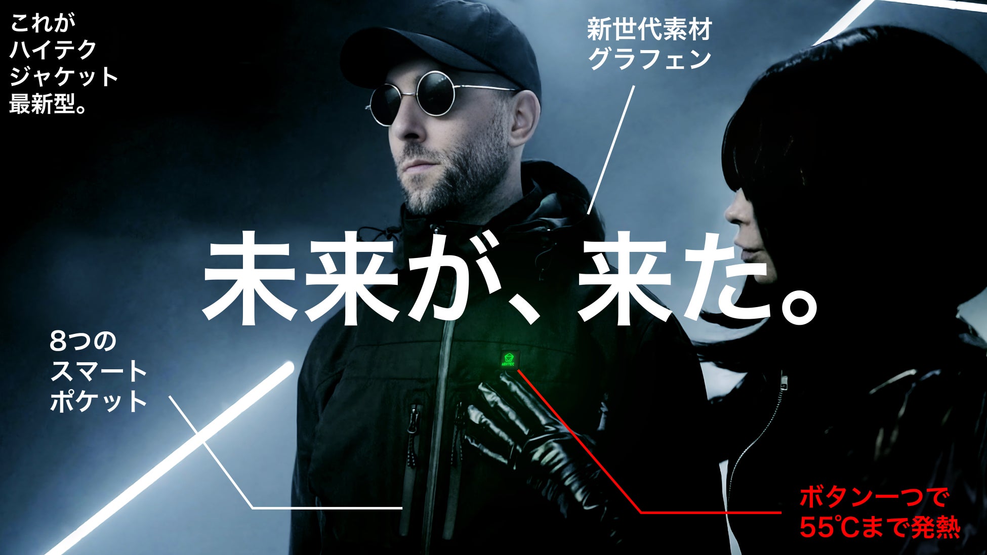 未来が来た。テクノロジー最先端都市カリフォルニアが放つ、渾身のハイテク・ヒートジャケット。Makuakeより日本上陸。