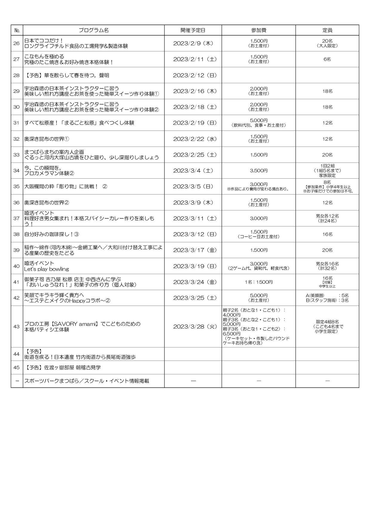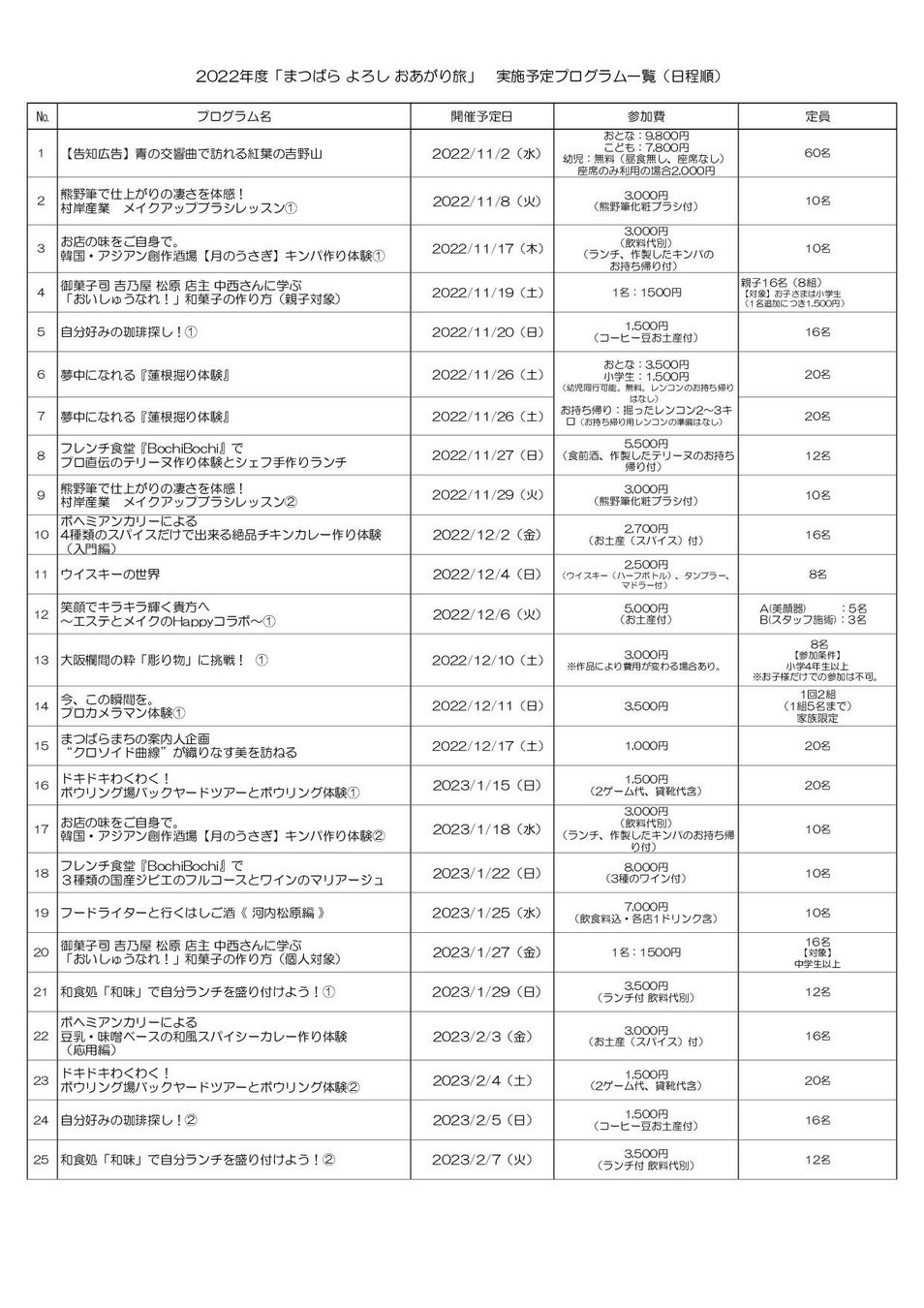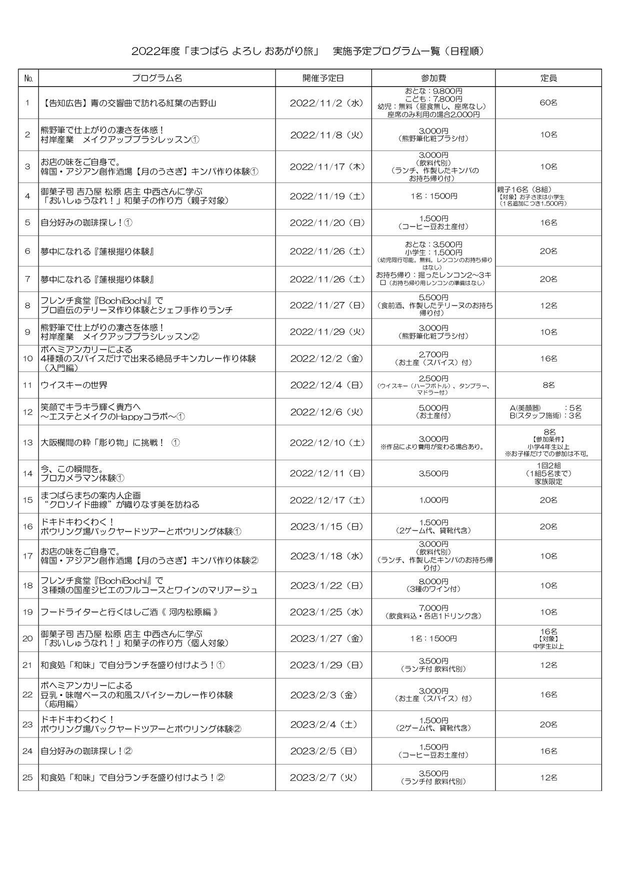 【「まつばら よろし おあがり旅 2022」プログラム一覧(日程順)】