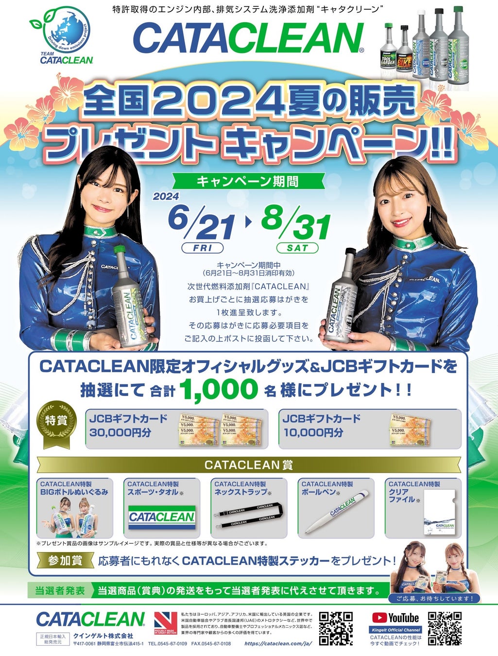 次世代燃料添加剤『CATACLEAN』お買上げ毎に抽選応募はがきを1枚進呈致します。