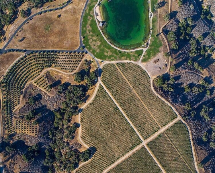グリムス・ブラフ・ヴィンヤードは2012年に設立されました。海抜850 mの高地、ハッピーキャニオン AVAの南東に位置する246エーカーの敷地に16.5エーカーの畑が広がります。畑はサンタイネズリバーを見下ろすことの出来る険しい傾斜に位置し、昔の川だった上に堆積した砂岩質ローム層。日中は暑く、夜間は涼しく、午後にはサンタ・イネズ・ヴァレーを西から吹き下ろす風があり、ブドウ栽培に恵まれた土地です。ヴィンヤードマネージャーに、トップバイオダイナミックコンサルタントであるフィリップ・コデリーに依頼。設立前の2011年から、バイオダイナミック農法を導入し、フランスのブドウ栽培に関する膨大な知識を共有しながら、水の使用量を減らし、ワイナリーに電力を供給するためにソーラーパネルを設置しました。設立当初よりバイオダイナミック農法およびオーガニックの手法を実践しているワイナリーは非常に珍しく、グリムス・ブラフ・ヴィンヤードでは、すべての畑について除草剤、殺虫剤、人工肥料は一切使用していません。