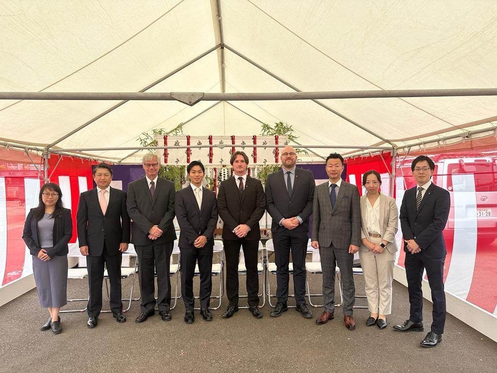 地鎮祭にはデンマークから来日したマースクトレーニング社関係者、在日デンマーク大使館からピータータクソ・イェンセン大使も訪れました。