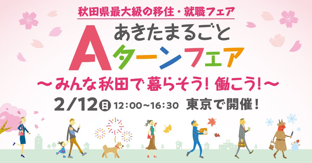 秋田県の企業情報、支援制度、暮らし、子育て情報、移住体験談などの情報収集ができるイベント。75の企業、16の市町村が出展予定、有効求人数は230件以上。各企業、市町村と話ができる個別相談ブースの他、起業や就農などの相談ブースも設置されます。また、秋田在住芸人・ねじさんによるステージイベントやデジタル体験コーナーも予定されています。