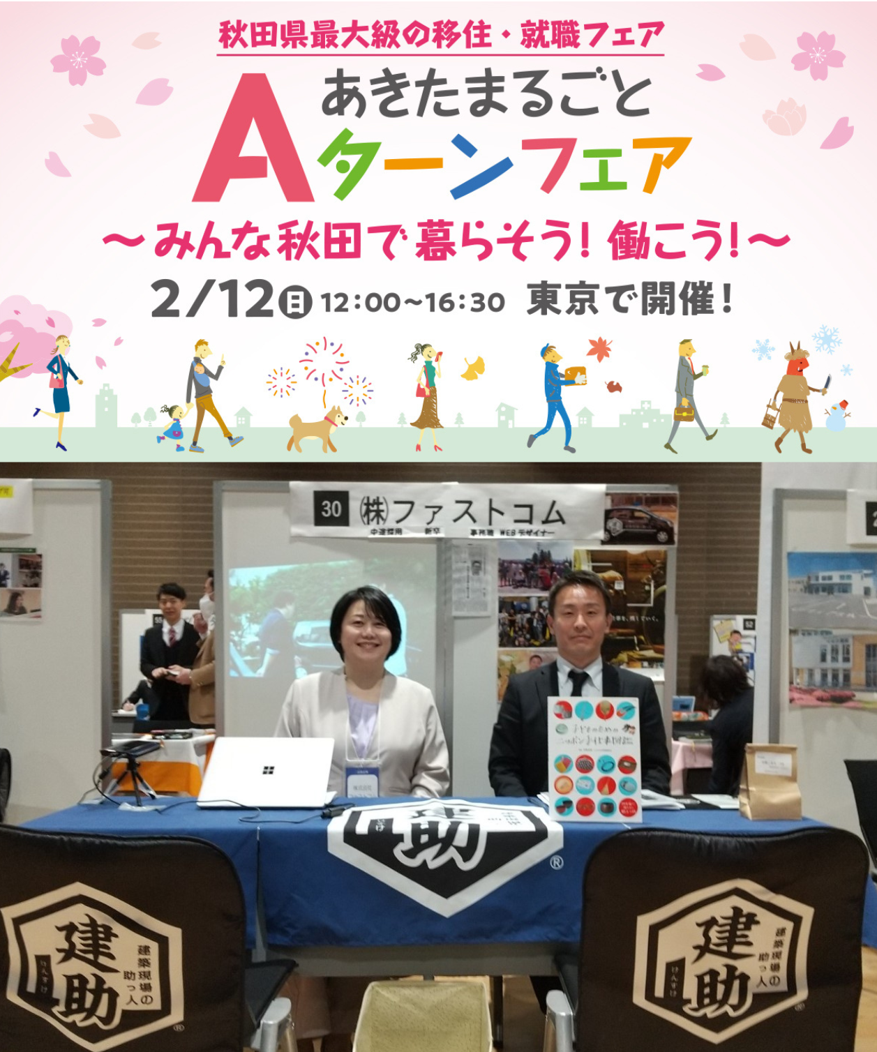 株式会社ファストコム(本社:東京都中央区日本橋人形町、代表取締役社長:小林栄治、以下、ファストコム)は、2023年2月12日に東京都立産業貿易センター浜松町館で開催される「あきたまるごとAターンフェア」に出展いたします。
