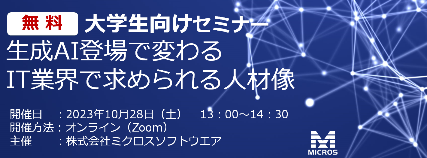 大学生向け無料オンラインセミナー「生成AI登場で変わるIT業界で求められる人材像」10月28日(土)開催のお知らせ