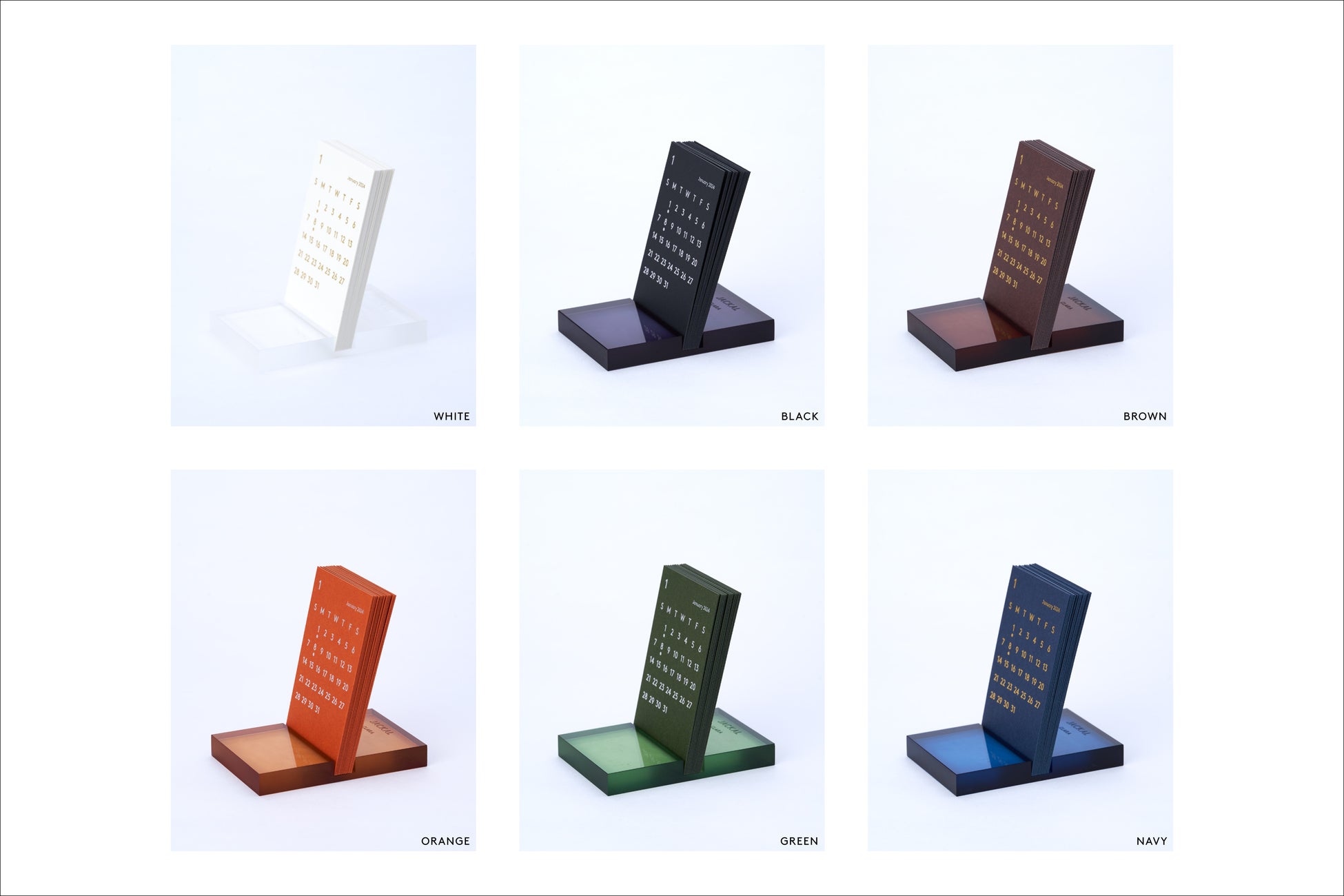 アクリル台座に12枚のカレンダーを差し込んでお使いいただくコンパクトな卓上カレンダーです。優しい風合いの厚紙に箔押し加工されたカレンダーと、深みのある手染めのアクリル台座の組み合わせは、男女ともに使いやすいシンプルなデザインで、ハイセンスな贈り物としても大変喜ばれている商品です。